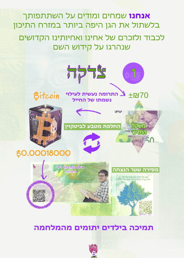 Donation via Bitcoin-based memory certificates - for the elevation of the souls of the holy ones who were murdered in Kiddush Hashem, while also supporting the war's orphans.